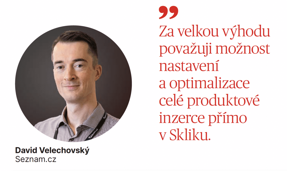 „Zboží inzeráty zvyšují celkový výkon produktové inzerce na Seznamu, protože inzerentům umožňují, aby se jejich produkty zobrazily více lidem. A větší zásah znamená pro e­‑shop vyšší obrat. Za velkou výhodu považuji možnost nastavení a optimalizace celé produktové inzerce přímo v Skliku. To je výhodné především pro menší a střední inzerenty, kteří nevyužívají nástroje pro automatické nastavování cen za proklik,“ říká David Velechovský, manažer konzultací Skliku.