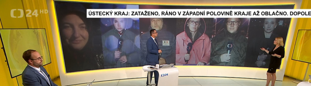 V terénu v nejohroženějších místech působí každý den až na pět desítek štábů, tedy redaktorů, kameramanů a posádek přenosových vozů. Během nedělního kontinuálního vysílání se přihlásily živě z více než třiceti míst. Nasazená je mobilní technika i drony. Vysílání řídí týmy editorů, režisérů a posádek ze studií v Praze, Brně a Ostravě. Česká televize klade důraz na svoji povinnost coby média veřejné služby přinášet obyvatelům ČR v kritických situacích podstatné informace. To, že diváci servis oceňují, dokládá vysoký zájem právě o vysílání veřejnoprávního zpravodajství.