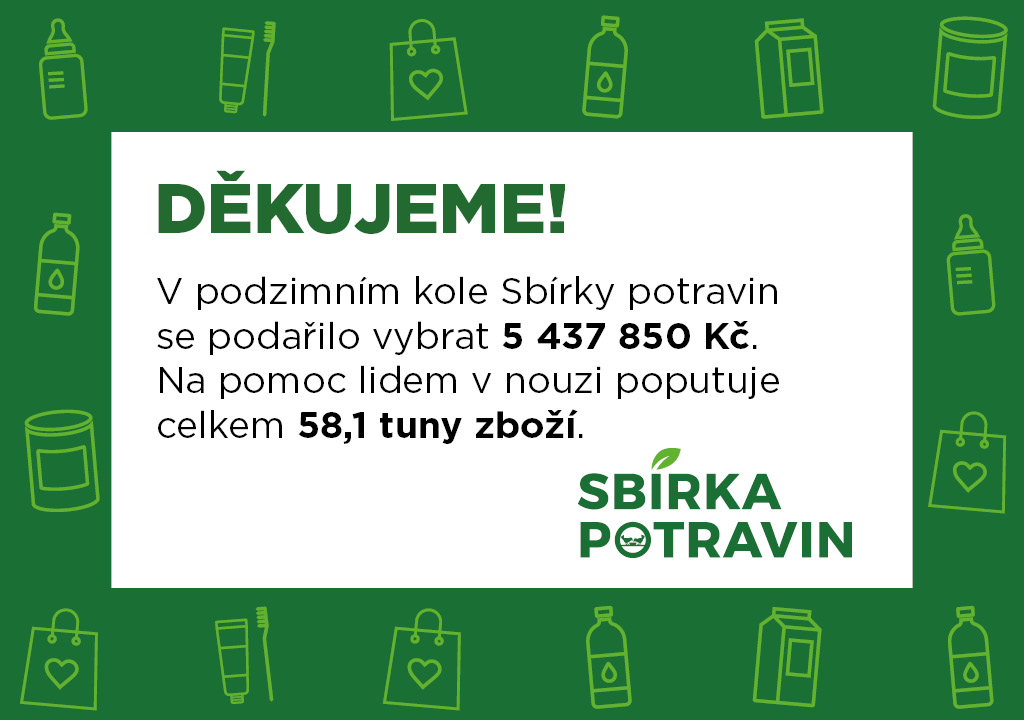Společnost dm uzavřela podzimní kolo Sbírky potravin. Díky štědrosti zákazníků bylo v období od 4. do 8. listopadu 2025 vybráno celkem 58,1 tuny zboží pro lidi v nouzi. Zákazníci nejvíce využívali možnost zakoupení virtuálních balíčků v prodejnách dm, úspěšná byla také fyzická sbírka.