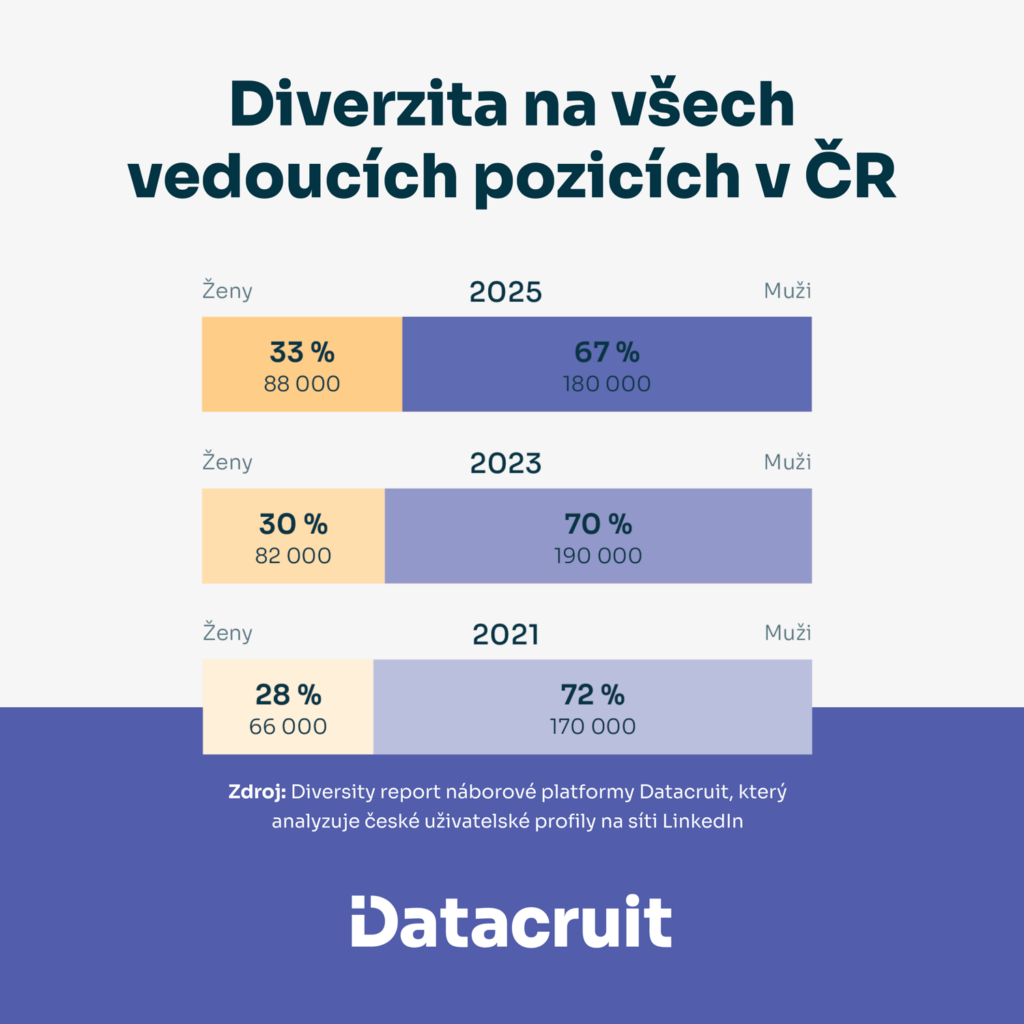 „Data z naší studie, kterou pravidelně aktualizujeme, ukazují, že diverzita v českém leadershipu se vyvíjí. Změny nejsou rychlé, ale jsou systematické. Podíl žen, které dostávají důvěru na vedoucích pozicích ve firmách, se zvyšuje. Společnosti, které tento trend následují, získávají nejen lepší firemní kulturu, ale také pestřejší, silnější a inovativnější týmy,“ říká Zdeněk Bajer, CEO společnosti Datacruit.