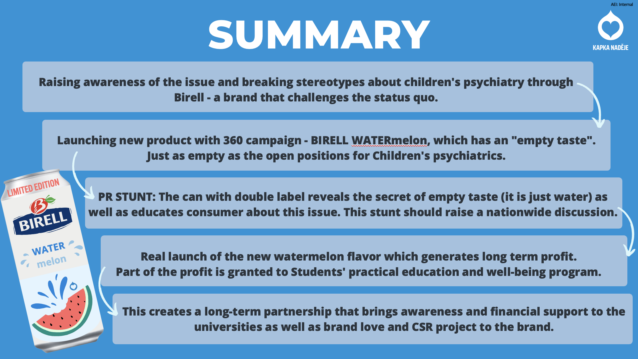 Prestižní soutěž pro mladé talenty do 31 let věku Young Lions už zná všechny vítěze 15. ročníku národního kola. Po pondělní kategorii Media, úterní Digital, středeční PR a čtvrteční Print přišla na řadu tradičně páteční kategorie Marketers. Dvojice měly během 24 hodin připravit koncept kampaně pro neziskovou organizaci Kapka naděje. Dostaly za úkol využít síly značek, které zastupují, aby nalákaly studenty k oboru dětské psychiatrie.