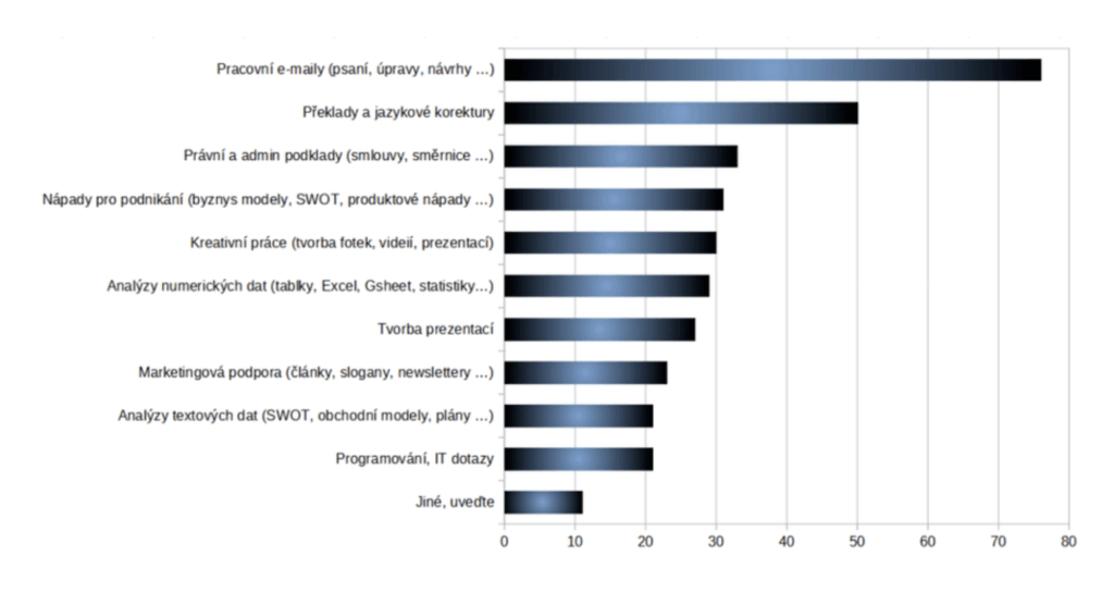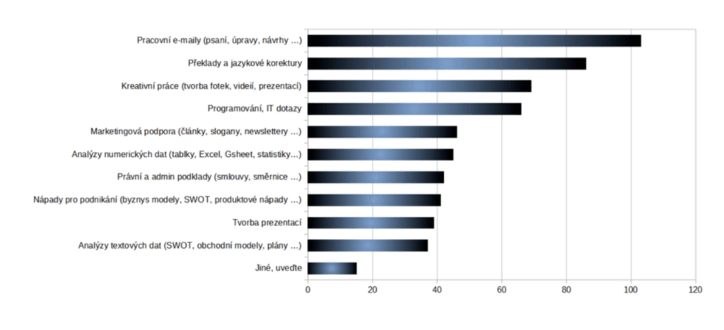 22,1 procenta uživatelů používá AI chatboty pro pracovní dotazy, a to zejména tohoto typu: