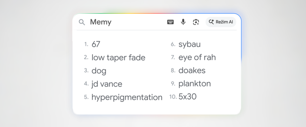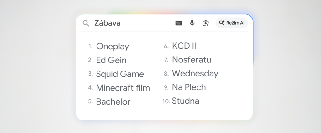 Volby a politika, ale také seriál Squid Game, skibidi a potenciálně levná koupě tenisek Reebok. Nejen to letos Češi vyhledávali na Googlu. Z tuzemských osobností dominovali politici, ze zahraničních hvězdy, které Česko navštívily – například Dua Lipa, Dakota Johnson či Dan Brown, který sem umístil děj nové knihy. Čechy zajímal také start videotéky Oneplay, sběratelská mánie Labubu, pořad Bachelor nebo bounce rate.