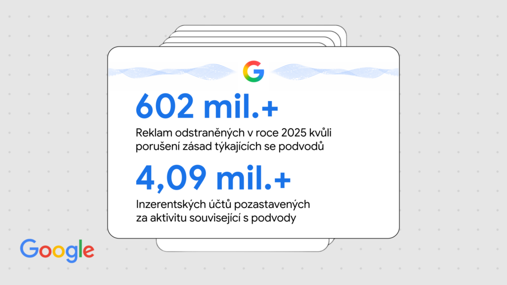 Tento aktivní přístup významně pomohl v obraně proti podvodníkům. V roce 2025 bylo zablokováno nebo odstraněno více než 8,3 miliardy reklam a pozastaveno 24,9 milionu účtů. Z toho 602 milionů reklam a 4 miliony účtů přímo souvisely s podvody.