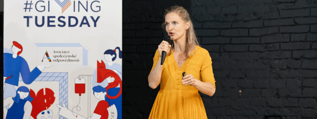 Slova se poté ujala zakladatelka Asociace společenské odpovědnosti Lucie Mádlová, která účastníky provedla historií Giving Tuesday v Česku a přiblížila i letošní ambice. Připomněla, že iniciativa je celosvětovým protikladem ke konzumnímu Black Friday a že v Česku ji asociace zastřešuje již od roku 2016.