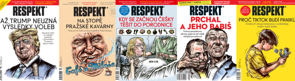 Držitel novinářské ceny Karla Havlíčka Borovského, kterou převzal v roce 2009 za jedinečnou výtvarnou reflexi domácího i světového dění, nejdříve pomáhal Respektu s grafickou úpravou a posléze začal připravovat titulní strany. Ty nezaměnitelně glosovaly politické dění i obsah časopisu.