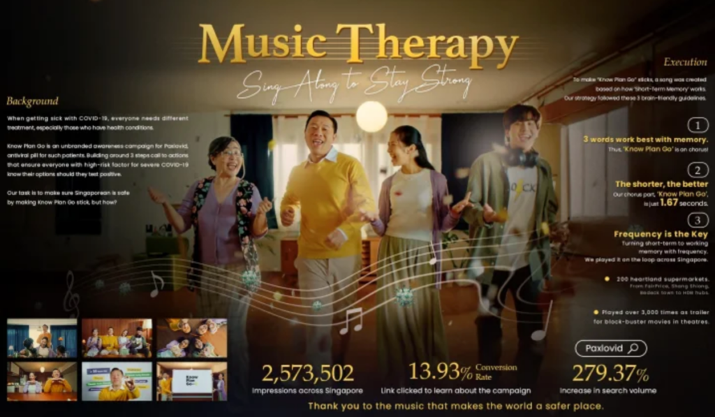 V kampani společnosti Pfizer „Know Plan Go“ jsme lokalizovali sdělení prostřednictvím hudebního marketingu v Singapuru a Thajsku – ukázka toho, jak může kreativní vyprávění příběhů zpřístupnit a přesvědčit sdělení týkající se zdravotní péče.