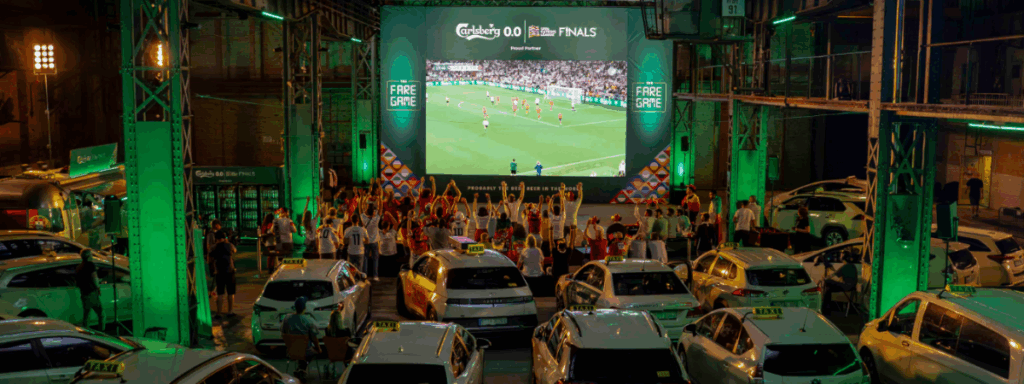 Taxikáři, kteří si původně objednali běžnou jízdu, dorazili do The Fare Game Cab Parku – speciální divácké zóny, kterou Carlsberg vybudoval v Berlíně přímo pro ně. Zde mohli sledovat zápas na velkém plátně, zdarma si vychutnat nealkoholické pivo Carlsberg 0.0, pochutnat si na občerstvení a fandit svým týmům společně s dalšími řidiči. Carlsberg jim navíc uhradil cenu jízdného, takže nepřišli o výdělek.