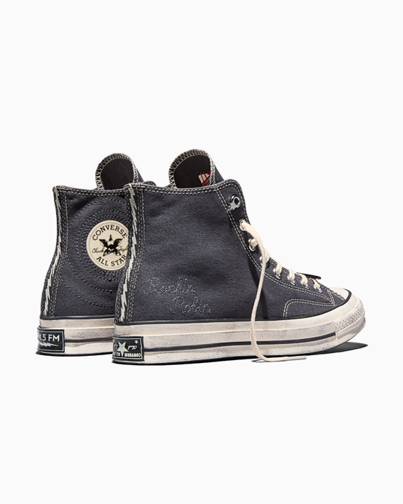 Model Converse X Stranger Things Chuck 70 nabízí plátěný svršek se záměrně „opotřebovaným“ efektem, retro barevností a řadou ukrytých detailů inspirovaných postavami a symboly seriálu. Nechybí vyšívaný znak Rockin’ Robin, motivy radiového signálu, vnitřní potisk „Beam Me Up This Place Sucks!“ či jazyk s nápisem „HellFire Lives“.
