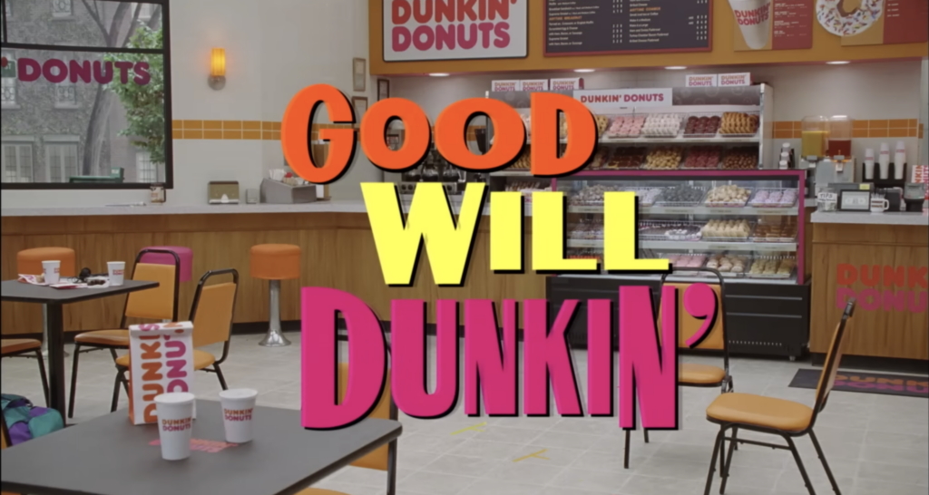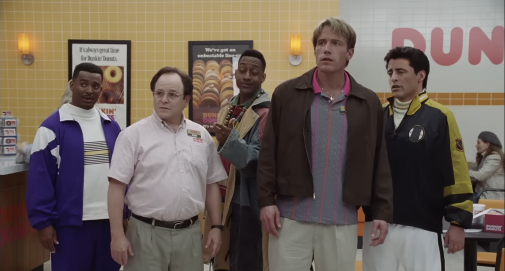Reklama s názvem Good Will Dunkin’ se tváří jako nikdy neodvysílaný pilotní díl sitcomu z roku 1995. Vypadá jako archivní nález z VHS kazety s typickým smíchem publika, přehnanými účesy a stylem, který okamžitě evokuje televizní komedie 90. let. Název i samotný děj odkazují mimo jiné na film Good Will Hunting, první filmový úspěch Bena Afflecka. Ten ale nehraje svou původní postavu, Willova nejlepšího kamaráda Chuckieho Sullivana, ale samotného matematického génia Willa Huntinga, kterého v originále ztvárnil Matt Damon.