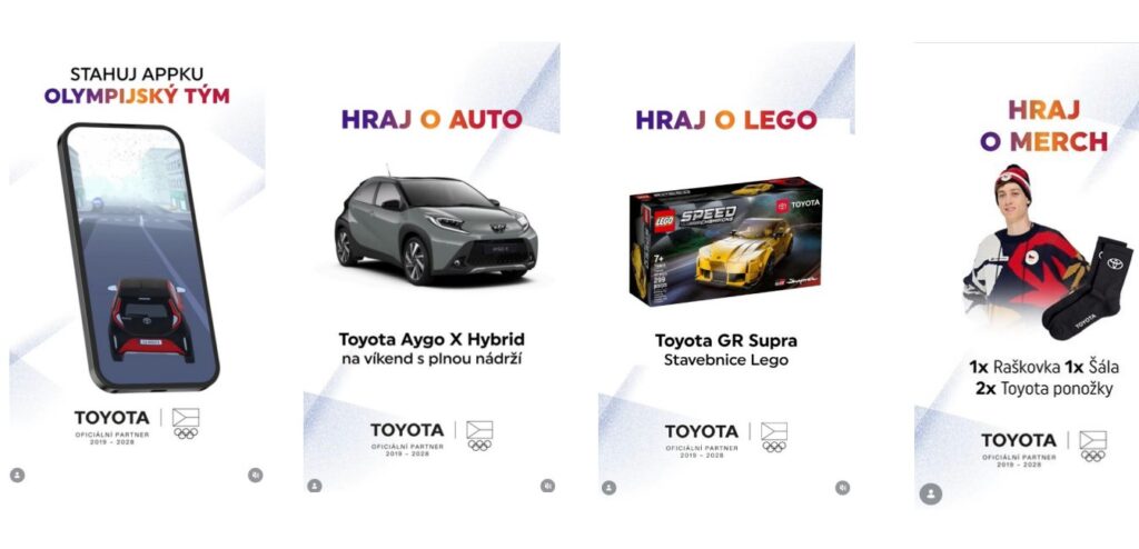 České zastoupení automobilky Toyota se zapojilo do digitálního doprovodného programu zimních olympijských her prostřednictvím oficiální olympijské aplikace Českého olympijského výboru. Partnerství přineslo fanouškům soutěže interaktivní obsah i herní aktivace, které během her zaznamenaly desítky tisíc zapojení.