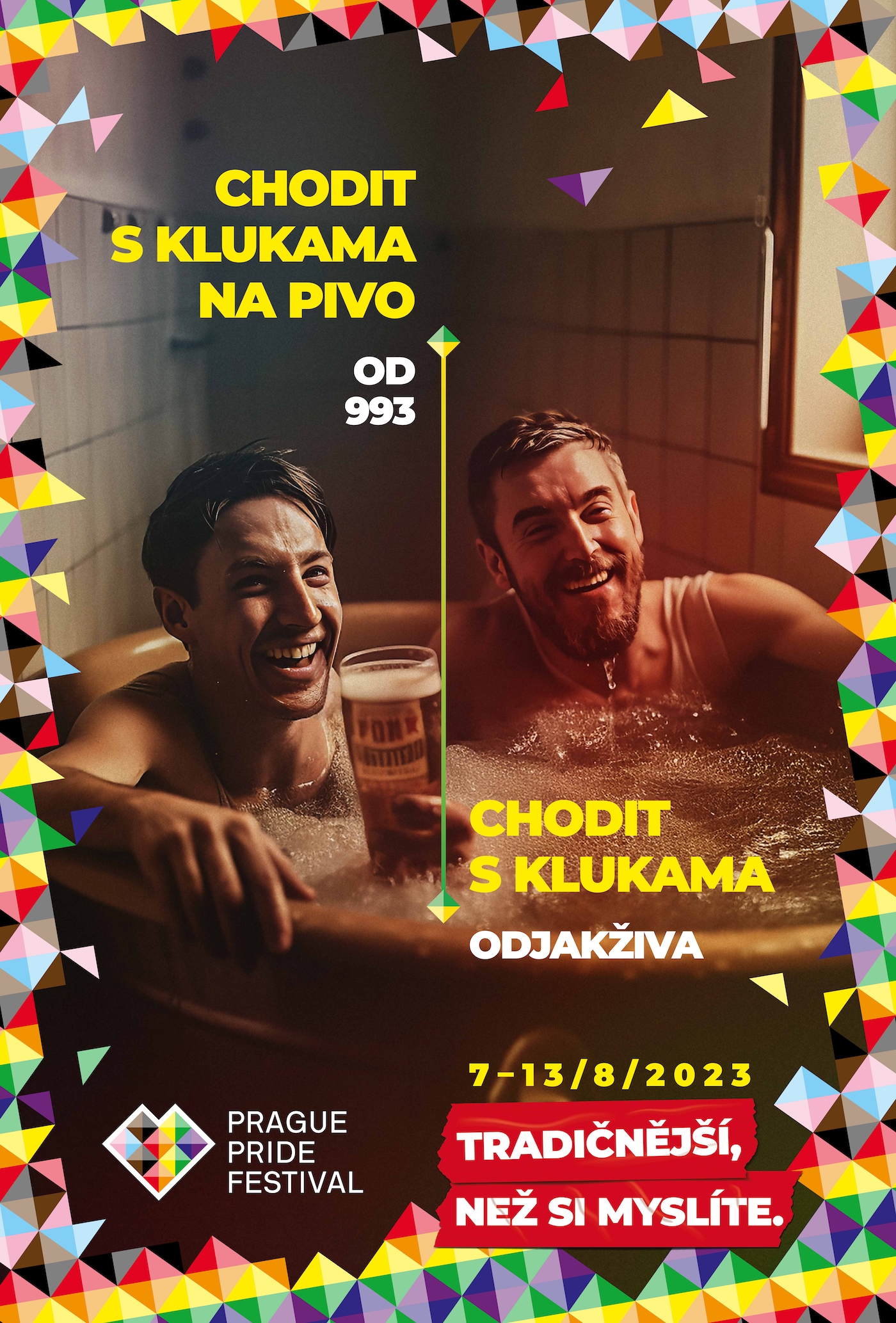 Zastřešujícím tématem letošního 13. ročníku festivalu Prague Pride jsou tolik diskutované tradice a jejich význam pro společnost. „Tradice vnímáme jako přirozené, ale to jen proto, že jsou předávány přes několik generací. Ve skutečnosti jsou vymýšleny lidmi, a to za určitým účelem. Je tedy potřeba je časem revidovat a rozhodnout, zda ještě stále slouží původnímu cíli, nebo jsou už jen reliktem doby,“ říká Kamila Fröhlichová, ředitelka festivalu Prague Pride. Letošní kampaň připravila agentura VMLY&R s cílem představit queer komunitu jako odvěkou součást společnosti v kontrastu s historicky mladšími tradicemi, jako jsou například bílé šaty pro nevěstu nebo setkávání v hospodě.