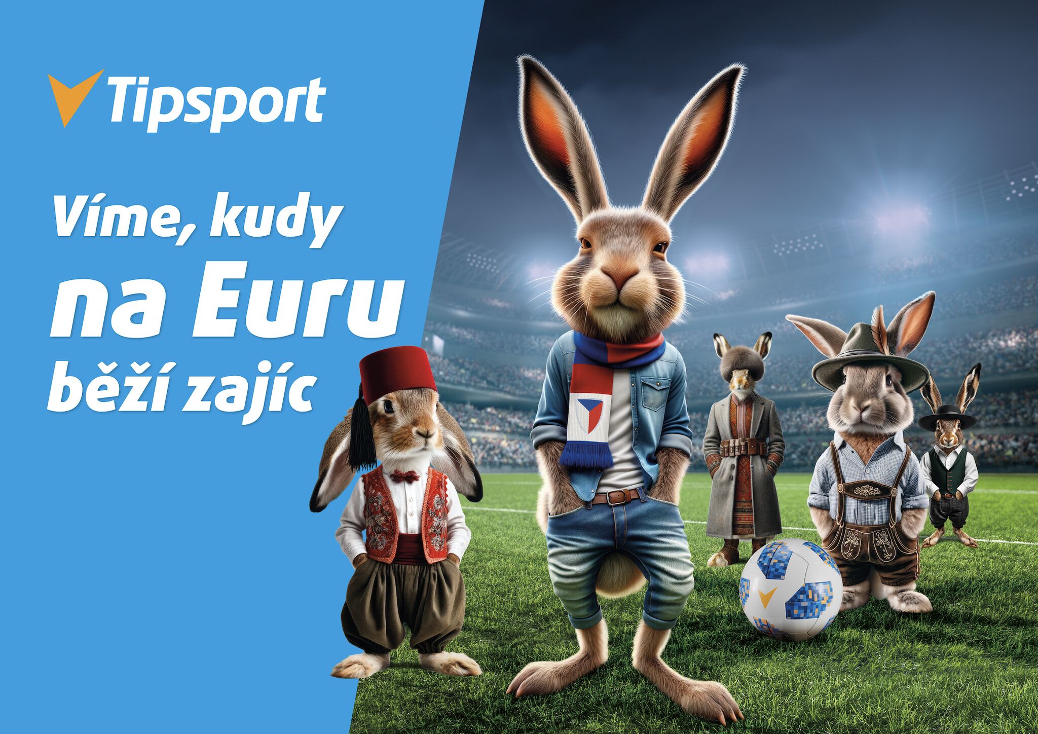 Tipsport představil svou kampaň k fotbalovému mistrovství Evropy, které začne v pátek v Německu. Využil k němu spojení s populárním podcastem Kudy běží zajíc, na kterém stojí i netradiční kreativa TV spotů.