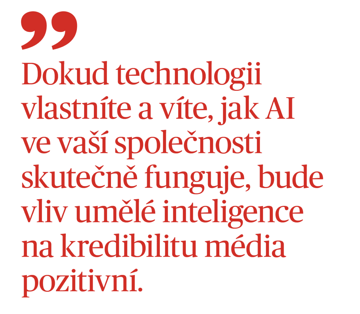 Dokud bude novinář zodpovědný za každé uvedené slovo, pak pozitivní. A také dokud jako médium tuto technologii vlastníte a víte, jak AI ve vaší společnosti skutečně funguje. Proto nekupujte do redakcí žádné černé skříňky z trhu, pakliže nerozumíte tomu, jak fungují.