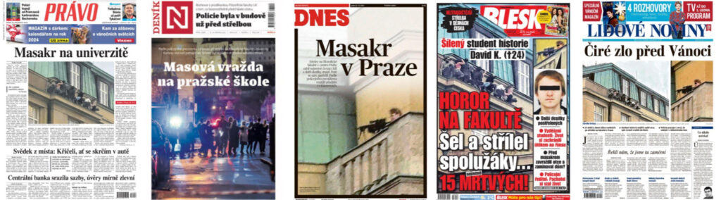 Útok na Filozofické fakultě Univerzity Karlovy se stal nejhorší masovou střelbou v dějinách Česka. Nejen celá společnost, ale i média byla vystavena mimořádné situaci, kdy mnoho informací bylo nejasných, nepotvrzených a zmatečných. V demokracii se svobodou médií je prakticky nemožné, aby nedošlo při referování o tragédii k chybám. Mnohé mediální domy chyby již reflektují a zpřesňují své kodexy a editorská pravidla. NFNZ se rozhodl do této potřebné diskuse přispět první rozsáhlejší studií na toto téma, kterou vypracoval tým Centra pro mediální etiku a dialog.