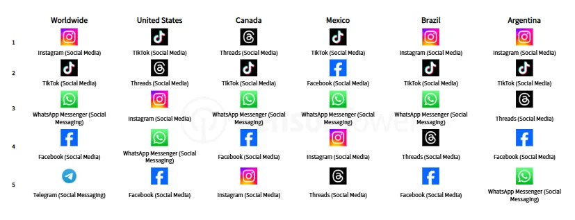Přehled zdůrazňuje především trvalou dominanci sociálních aplikací, které zůstávají nejpopulárnějším typem aplikací na základě celkového počtu stažení.