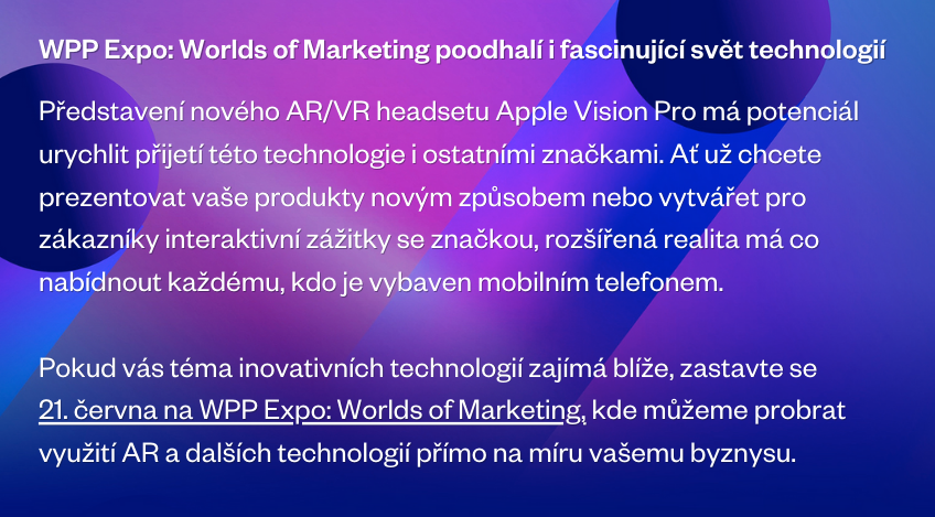 Když vezmeme v úvahu renomé společnosti Apple, její dlouhodobě úspěšný marketing a rozsáhlou zákaznickou základnu, dá se očekávat, že i ostatní značky se inspirují nedávným uvedením dlouho očekávaného AR/VR headsetu Apple Vision Pro a začnou nejen hledat způsoby, jak se pomocí inovativních technologií propojit se svými zákazníky, ale také do nich budou chtít více investovat. Rozšířená realita dramaticky mění způsob, jakým komunikujeme a interagujeme s okolím. Nejde o žádné sci-fi, ale rychle se rozvíjející obor, který upoutal pozornost nejen technologických nadšenců, ale i firem z různých odvětví.