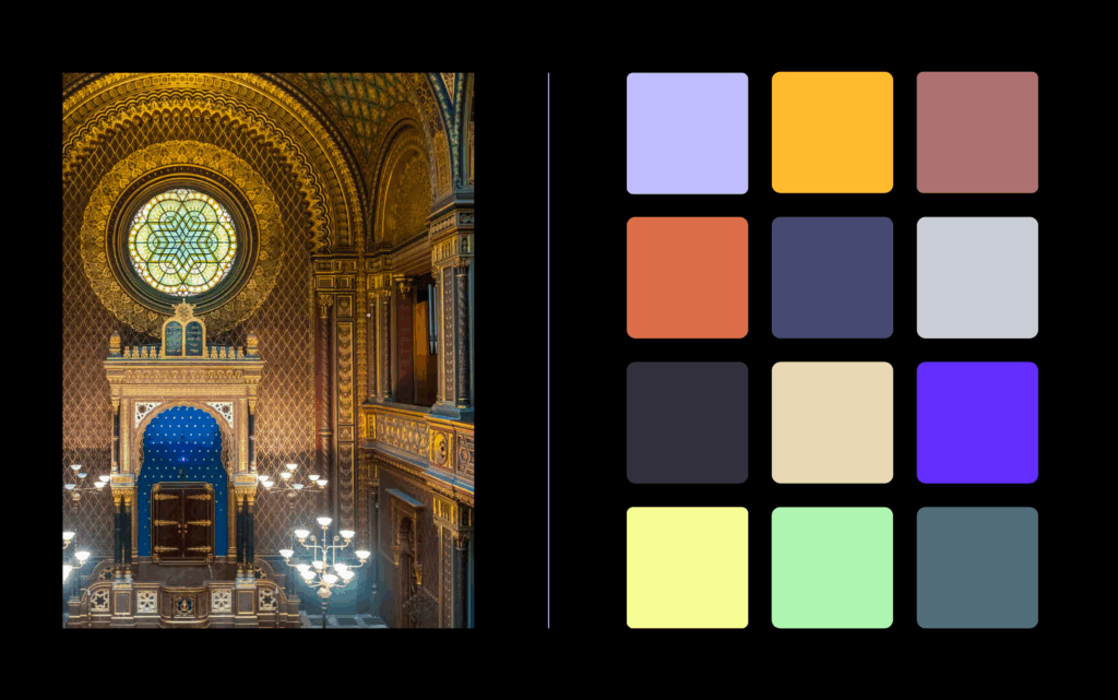 Nová vizuální identita je inspirována duchovní atmosférou, barevností a architektonickým tvaroslovím lokality a objektů, v nichž Židovské muzeum v Praze působí.